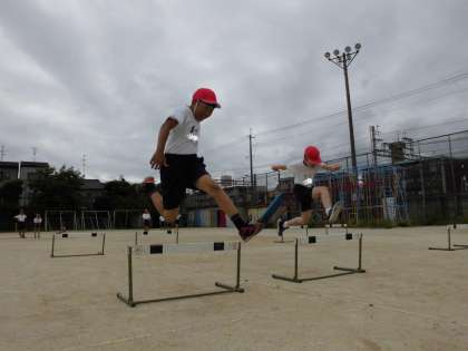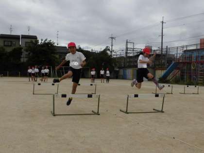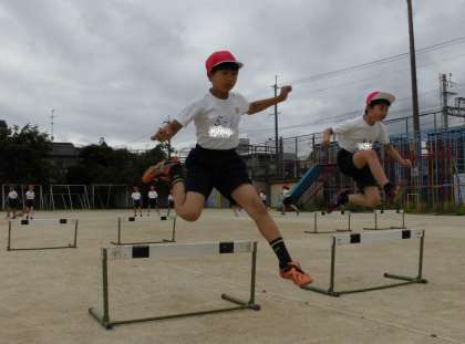 5年生の体育は「ハードル走」です。今日は3歩のリズムで走りきれる自分のインターバルを見つけました。リズミカルにハードリングができるように、がんばって練習していこうね!