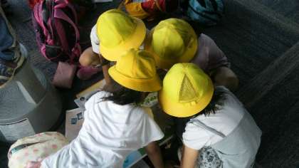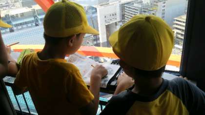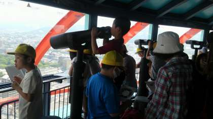 3年生は社会見学です。京都タワーにのぼって京都のまちの様子を調べます。何が見えますか?