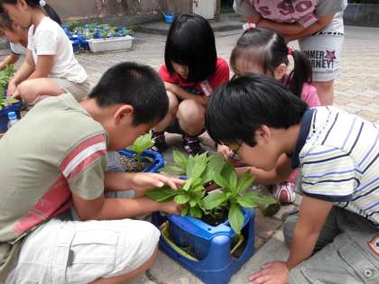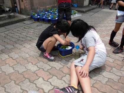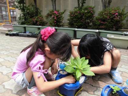今日は大きく育ったホウセンカを観察して、まわりに生えてきている雑草を抜きました。大事なホウセンカにいく栄養を取られないようにていねいに抜いていきました。早く大きく育つといいね!