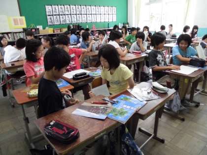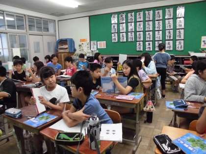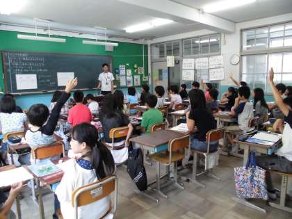 今日は小数や分数で表わされた比をできるだけ小さな整数の比になおすことを考え,練習しました。特に分数で表わされた比を簡単にするには,比の値を求めて,それを使うといいですね。