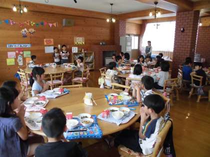 今日のランチルーム給食は2年2組でした。4時間目の食の学習では野菜について学んだあとだったこともあり,7種類の野菜をおいしく味わって食べていました。みんなのおなかの中はビタミン君とせんい君でいっぱいになりました。