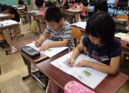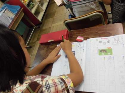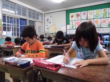 今日は「池」と「丸」の漢字を習いました。みんなで姿勢に気をつけながら、ていねいに書いていきました。