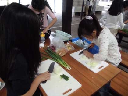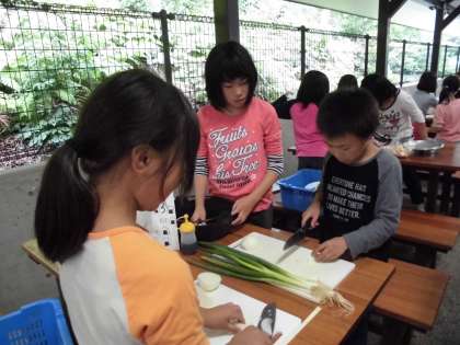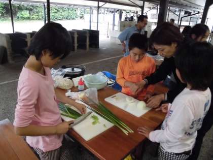 野外炊事が始まりました。