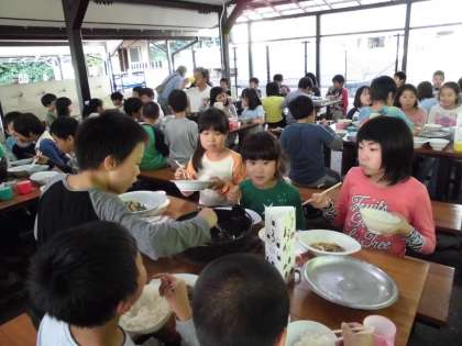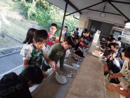 みんなでおいしくいただいた後は、なかよく後片付けです。