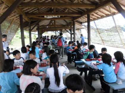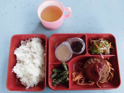 昼食はハンバーグです。みんな体調もよく、ぺろりとたいらげました。