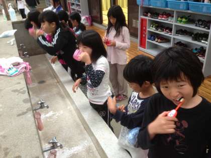 歯磨きをして…。
