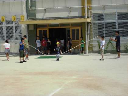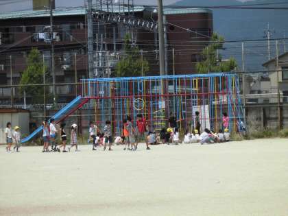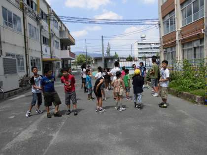 今日は梅雨も明けて,ぎらぎら太陽の下,たてわり遊びを楽しみました。大縄,「だるまさんが転んだ」,ドッヂボールなどそれぞれみんなで決めた遊びをグループで楽しみました。最後は,教室までなかよく帰りました。