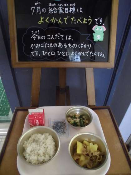 カレー味に味付けをし、暑い夏にもちょっぴり食欲がそそるように工夫された肉じゃがとともにおいしくいただきました。