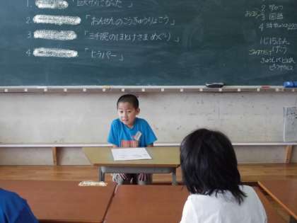 長い夏休みが終わりました。どんな楽しい出来事があったのか,上手にお話できました。友だちからの質問にも思い出しながら,答えてくれました。明日からも体調に気をつけて,頑張りましょうね。