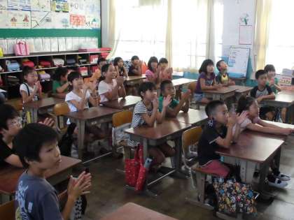 今日は夏休みを振り返って、みんなでスピーチをしました。プールに行ったり、キャンプをしたり、いっぱいお勉強をしたりと、みんな夏休みにしか経験できないことをたくさん経験することができたみたいですね。さあ、今日から授業再開。はやく頭を勉強モードに切り替えて、がんばってくださいね!