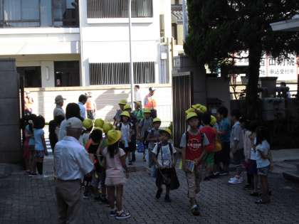 今日は,久しぶりの青空です。2年1組も張り切って,元気なあいさつができていました。目を見てのあいさつができるようになってきましたね。
