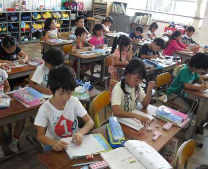 10以上の数のひきざんです。みんな真剣に取り組んでいます。