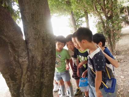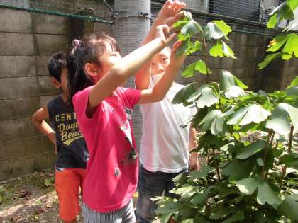 今日は、秋を見つけに運動場にいきました。色がかわり始めた葉っぱやぼろぼろになってしまったセミの抜け殻、たくさんの虫たちなど、いろいろ見つけることができました。少しずつ季節はかわってきているんですね。