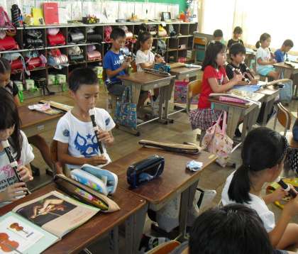 「レッツゴーソーレー」はリズムに乗りながら,「ゆかいなまきば」は歌声合わせて元気よく,頑張って演奏していました。