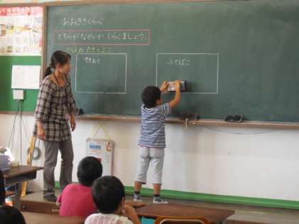 9月18日 (水) 1年 算数 「おおきさくらべ」