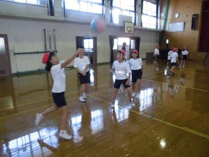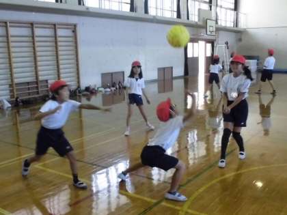 4年生の体育はソフトバレーボールです。まだまだ上手にレシーブはできませんが、みんなで一生懸命ボールをおいかけています。みんなで声をかけあって、なかよくがんばってくださいね!