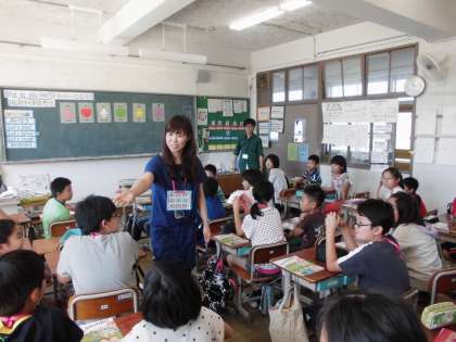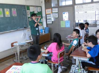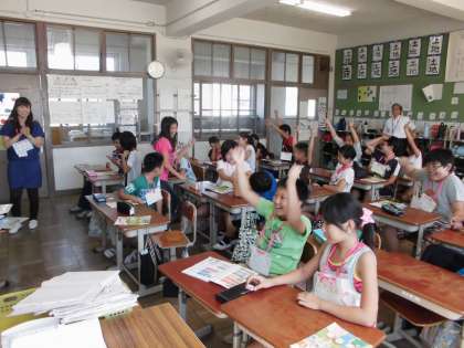 9月からALTの先生が新しくかわりました。カナダ出身のルー・アレクサンダー先生です。ルー先生といっしょに「What do you like?」を学習しました。まちがっても「やぶからスティックに!」とか「トゥギャザーしようぜ!!」なんて話しておりませんので・・・。