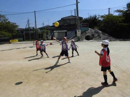 今日の体育はパスゲームです。はじめはうまくつなげられなかったパスが、今ではな、パスをとっても上手につなげながら、ゲームを楽しむことができるようになってきました。今日もたくさんシュートを入れられたかな?