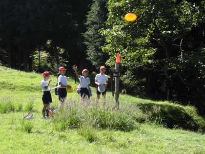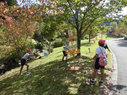 楽しみにしていたフライングデスクゴルフの時間がやってきました。4回クリアを基準として,それより少ない回数を目指そうと気合いを入れて臨みます。どんな結果になるのでしょうか。