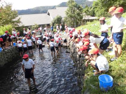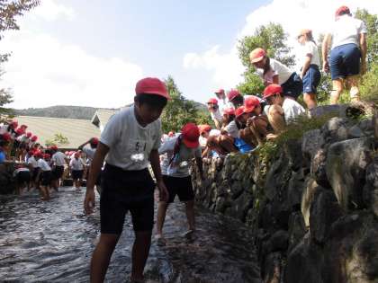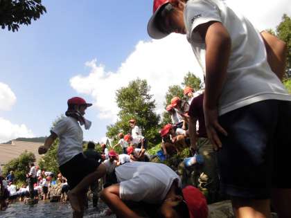 昼からの活動は、魚つかみです。今日、ねらう魚はイワナです。捕まえられるかな?