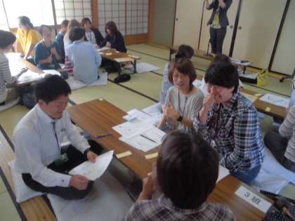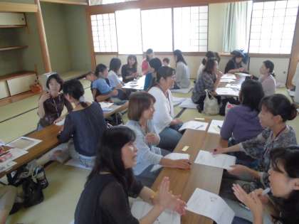 今日は和室で家庭教育講座「ほっこり子育てひろば」がひらかれました。今日のテーマは「受け止める」です。「自分に余裕やゆとりをもって子どもに接する」ことや「子どもの話をゆっくり聞いてやる」ことをはじめ、子育てで大切にしていきたいことを支援者の川西さんより、たくさん教えていただきました。今日はお家で実践してみてくださいね。