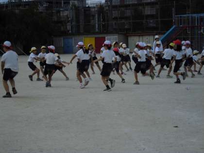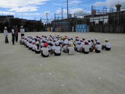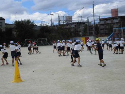 今日は,「80m走」や団体競技「竹取物語」の練習をしました。「竹取物語」では,対戦相手に合わせて移動したり,棒なしで取り合いの練習をしたりしました。笛の合図できびきび動くとかっこいいですね!