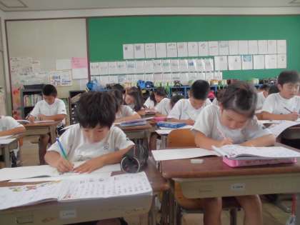 今日の国語は、これまでに習った漢字を復習しました。書き順に気をつけながら、一画一画をていねいに書いていきました。しっかり覚えられていましたか?
