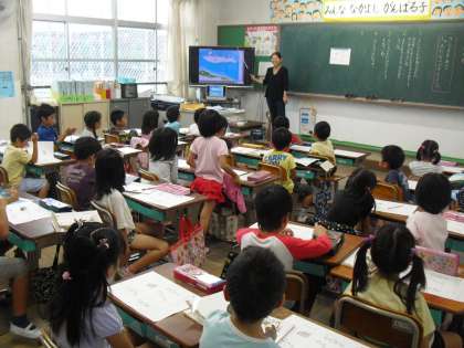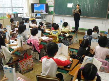 挿絵を見て,「何をしているところかな?」「どこにいるのかな?」と,友だちの発表を聞きながら考えました。今日から「くじらぐも」の音読の練習も始まります。皆とても張り切っていて,家で聞いてもらうのがとても楽しみなようでした。