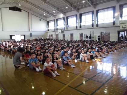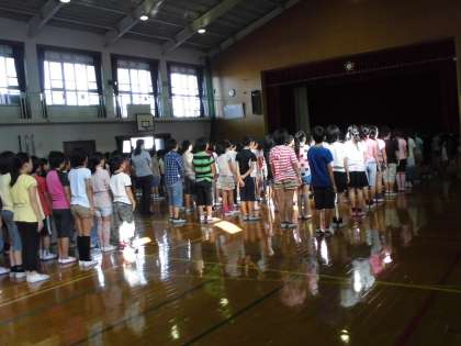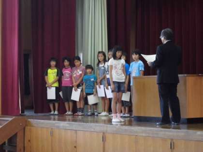 前期の終業式がありました。校長先生からは,「こつ」をつかむまでの努力や積み重ねが大切であるというお話や三連休で交通事故に合わないように気をつけて過ごすようお話がありました。また,いろいろな表彰がありました。代表の子どもが賞状をもらいました。