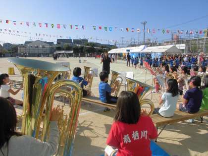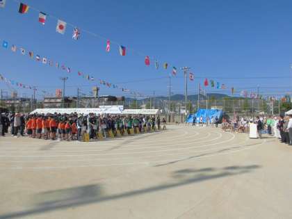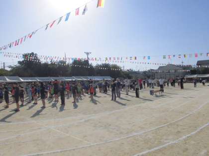 さわやかな秋晴れの下、区民体育祭が行われました。金管バンドの演奏にあわせて入場したあとは、いよいよ競技がはじまります。くれぐれも怪我にだけは気をつけて、みなさん全力でがんばってください。