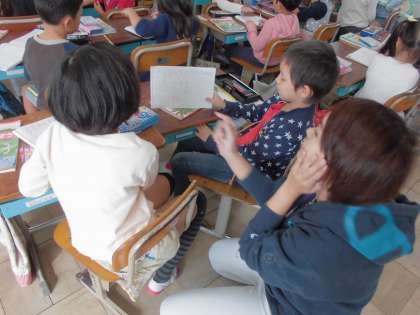 今日の算数のめあては「いろいろな計算の仕方を考えよう」です。「さくらんぼ」と「バナナ」の言葉を使い、10のまとまりをつくるために加数を分解したり、被加数を分解したりして考えていきました。合言葉は「サクランボ」と「バナナ」ですよ。