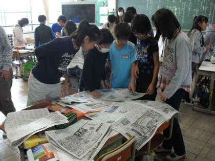 月に関わる言葉の多い秋の空,新聞紙からもたくさんの秋を見つけていました。