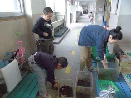 たんぽぽ学級で、毎年育てているカブトムシが、今年もたくさんの卵を産み、幼虫がすくすくと育っています。今日は、幼虫が大きく育ち手狭になってきたため、幼虫を別々の入れ物にうつしました。来年の夏まで、大切にそだててくださいね。