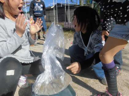 今日の算数は「重さ」の学習をしました。いろいろなものの重さを作ったり量ったりする活動を楽しみながら、重さに対する量感をつかみますが、実際に決められた重さをつくることの難しいこと。1kgの砂や落ち葉を集めるのですが、多かったり少なかったり。ぴったりの重さになった時には、みんな大喜び!!とっても楽しい1時間でした。