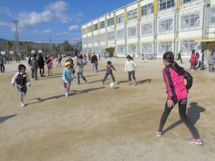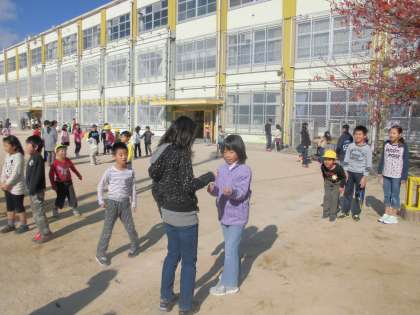 今日の中間休みは,先週の雨で延期になった「たてわりあそび」がありました。川岡の森もすっかり秋色に染まっていました。お天気もよく,「たてわりあそび」にはよかったですね。