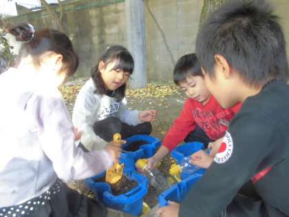 今日の生活は、二十日大根の種をまきました。夏にオクラや枝豆を育てた植木鉢の土を入れ替えて、種をまきました。二十日大根は、およそ20日で収穫できるから、その名前がついたそうです。冬休み前には収穫できそうなので、上手にそだてられるといいですね!!