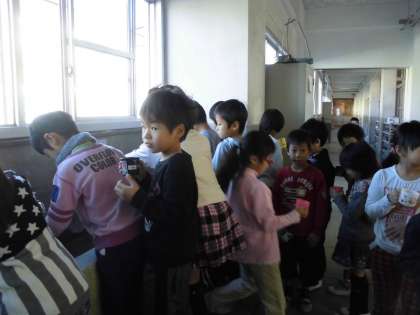 フッ化物洗口の様子です。一分間口の中にお薬を入れ,舌を使って歯に付くようにぶくぶくしています。フッ化物洗口もずいぶん慣れてきている様子です。コップからこぼれないように気をつけましょう!