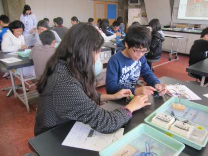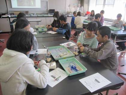 3組のテーマは「すごいぞ!コイル」です。コイルと聞いて思い出すのは電磁石ですが、実はコイルには、他にもおもしろい性質があります。そんなコイルのはたらきは、意外にわたしたちの身の回りでたくさん利用されていることを学んできました。