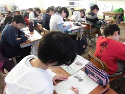 今日は,「真心のこもった行動」ができているかを考えました。資料の中に出てきた少女の行動や言葉から,まわりに流されて本来の礼儀正しい行動やマナーを忘れてしまっている「わたし」について話し合いました。その後,自分の生活を振り返りました。自分たちの生活の中で実は「真心のこもった行動」をたくさんしているんですね!