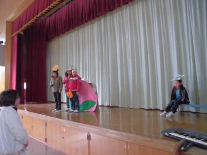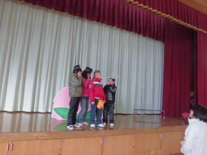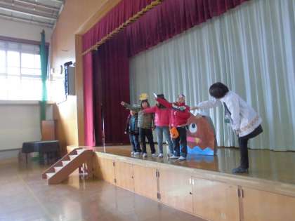 12月から始まった学習発表会の練習。29日の本番に向けて,ステージでしています。教室でもがんばって声を出していましたが,体育館でもがんばっています!どんな「ももたろうとゆかいななかまたち」になるのか,楽しみですね!