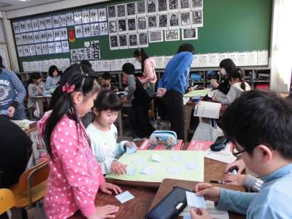 3,4時間目に「こどもエコライフチャレンジ」の授業がありました.今日もNPO法人気候ネットワークとボランティアのみなさんにお世話になりました。冬休みに取り組んだエコライフの結果をグループでまとめていきます。どんなことがわかりましたか?