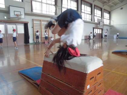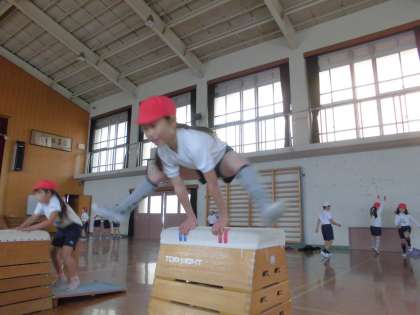 今日も体育は跳び箱です。体ならしでは、馬跳びでしっかりと体をあたためてから、いろいろな技に挑戦しました。足をかかえて跳んだり、跳び箱の上で回ったり、いろいろな技にチャレンジしていました!!