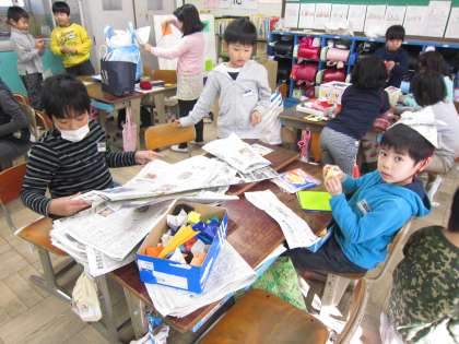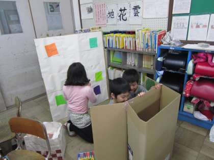 生活の時間には、1年生とフェスティバルをするためのおもちゃ作りをしました。いいのが作れたかな?