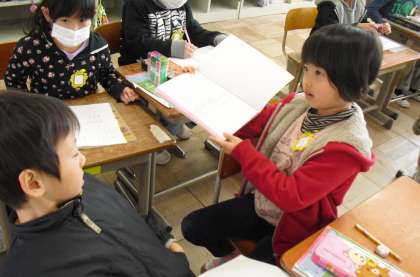 今日はみんなで計算の仕方を考えます。図や絵を使いながら友だちに説明をしました。