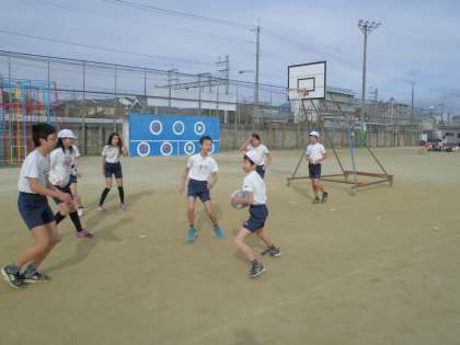 チームが勝つために,自分ががんばるめあてを決めて試合をしています。ボールをよく見て,シュートにつながる動きができるといいですね。