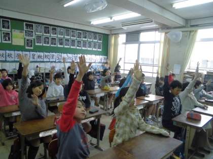 今日の道徳の主題は「生命を大切にする心」です。「ヒキガエルとロバ」のお話を聞いて、ロバのとった行為を見たアドルフたちの心の変化を考えることを通して、身近な動植物にやさしく接し、生命あるものすべてを慈しみ、大切にしていこうとすることについて考えを深めていきました。