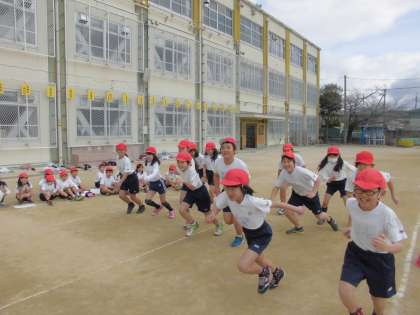 2月13日(木) 4年 体育「かけあし・なわとび・すもう」