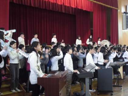 いよいよ、本番を明日に控えた6年生。小学校生活最後の学習発表会です。みんなで力をあわせて、がんばってくださいね!