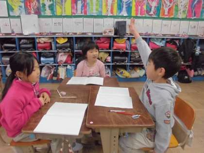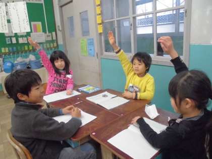 今日の国語のめあては、「みんなで話し合って、おにごっこのルールを決めよう」です。みんなが楽しめるおにごっこにするために、どうすればいいのかをグループごとに話し合いました。うまく話し合いを進められましたか?