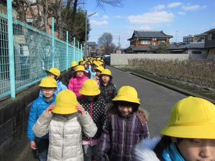 今日の生活は、これから学習する「町探検」にむけて、みんなで町を歩きました。校区には、たくさんのお店やお寺をはじめ、いろいろなところがありました。これから、どこをしらべていこうかな〜?